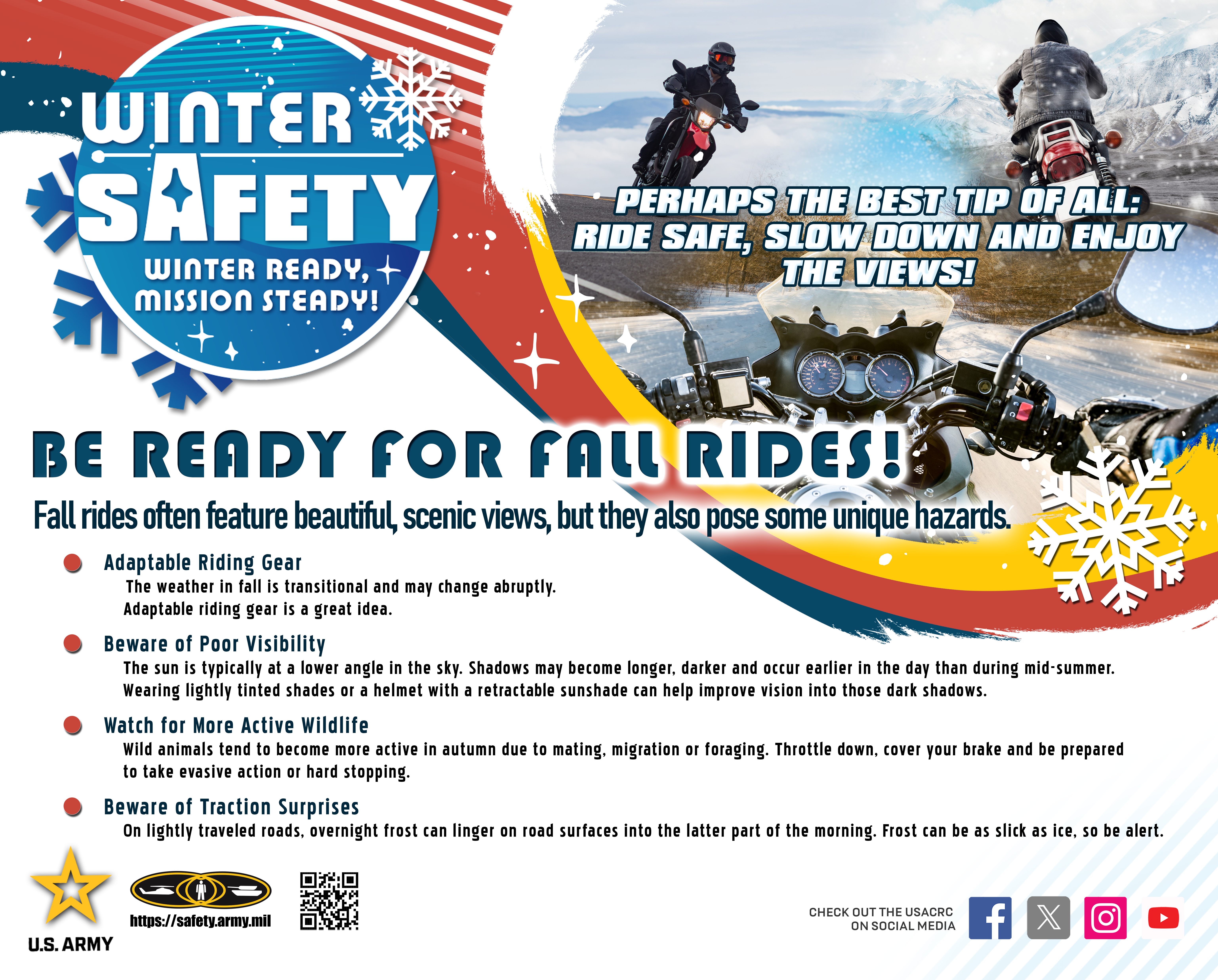 From October through March, the U.S. Army Combat Readiness Center places a special emphasis on winter and cold-weather safety. Cold-weather injuries, such as frostbite and hypothermia, as well as slippery conditions, present significant challenges during this time of year.