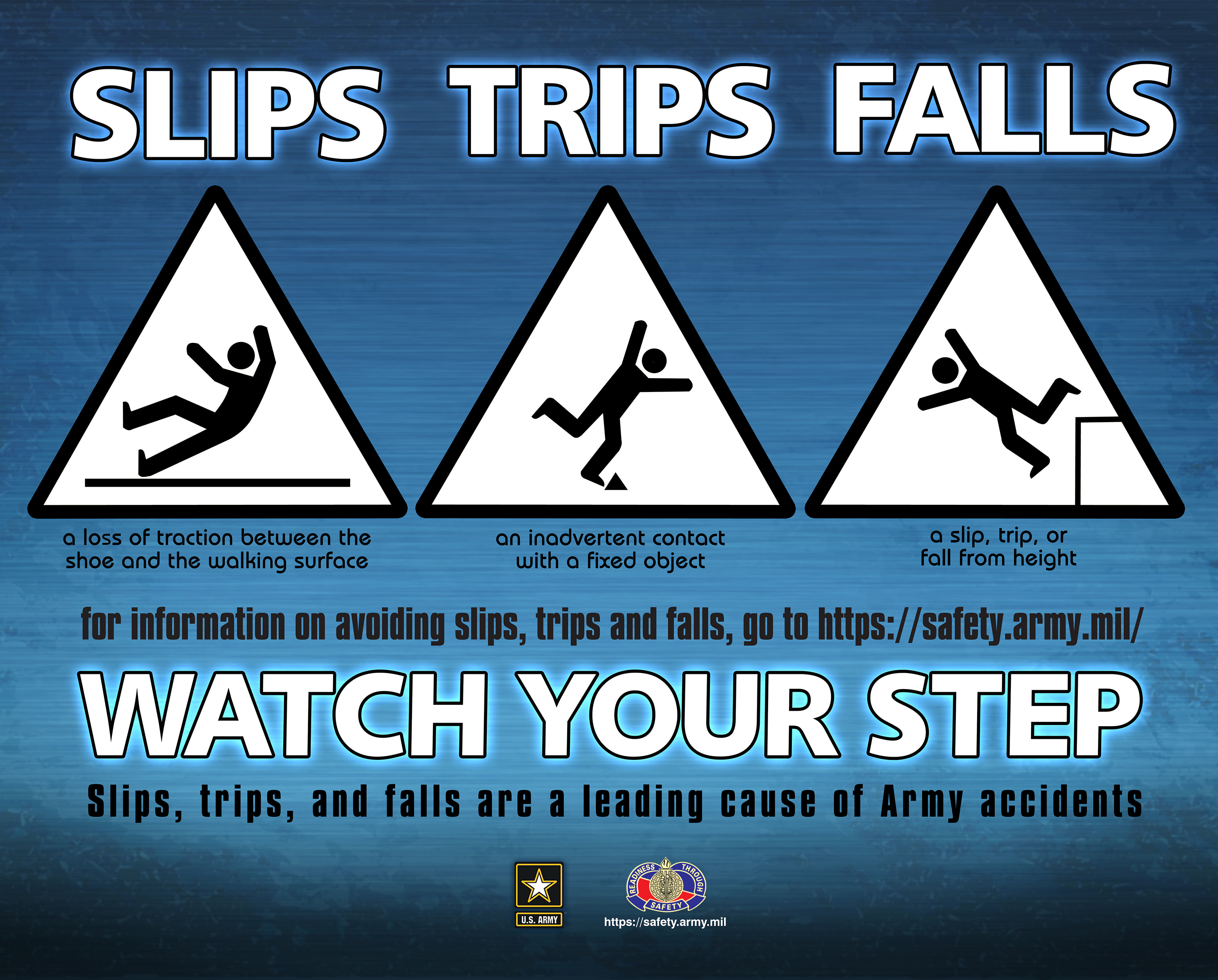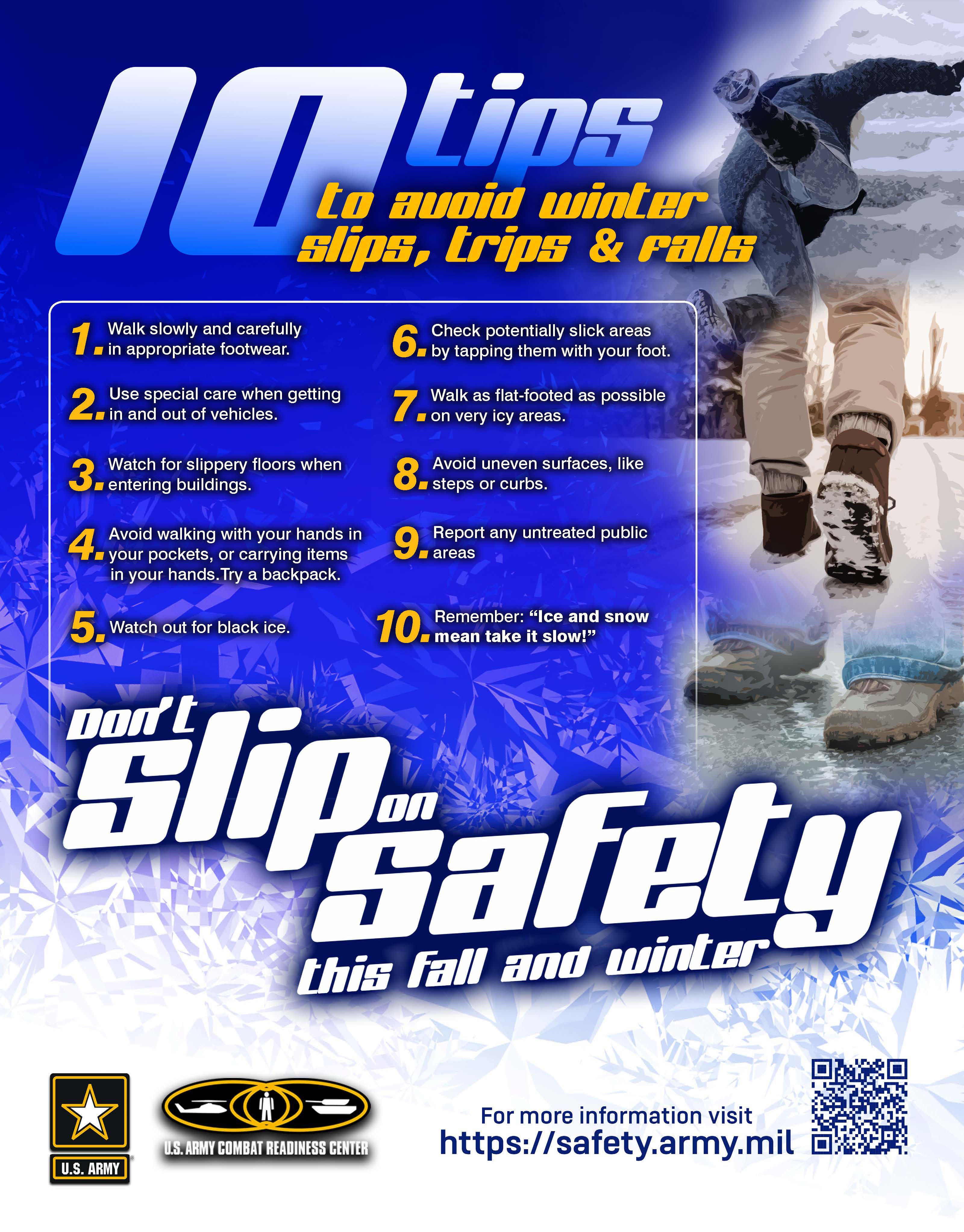 For Fall Prevention information on Slips, Trips, and Falls, go to the: ON-DUTY > Workplace > Fall Protection page (see the 'Additional Information' section)